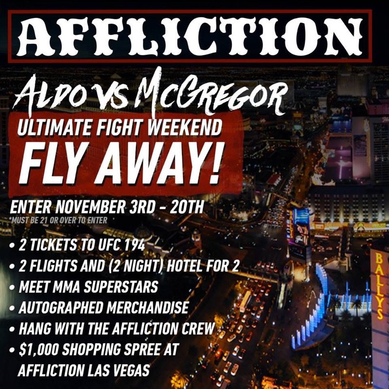 Home »Unlabelled » Las Vegas Fight Shop tweeted: Enter to win @Affliction's Ultimate Fight Weekend in #Vegas for #UFC194: